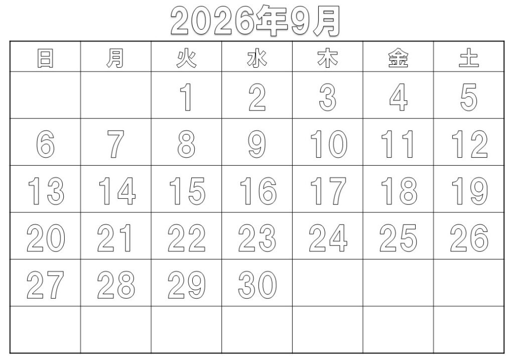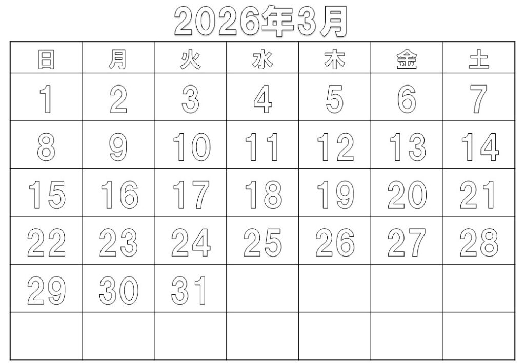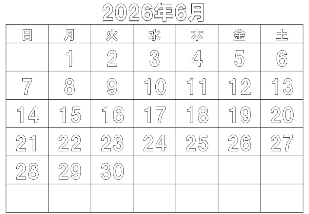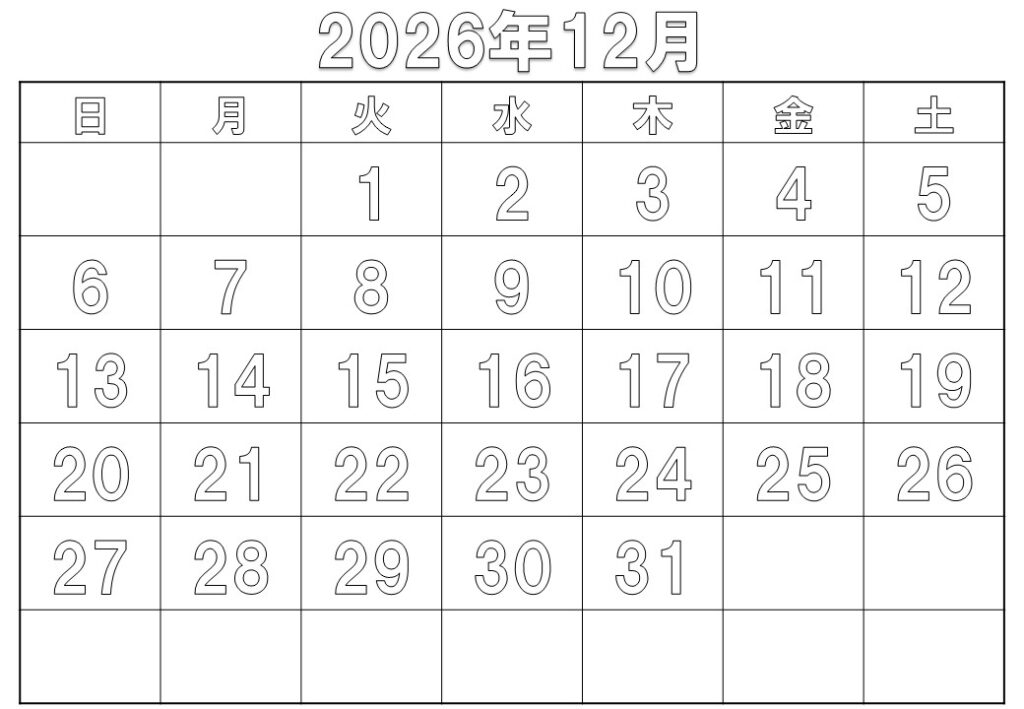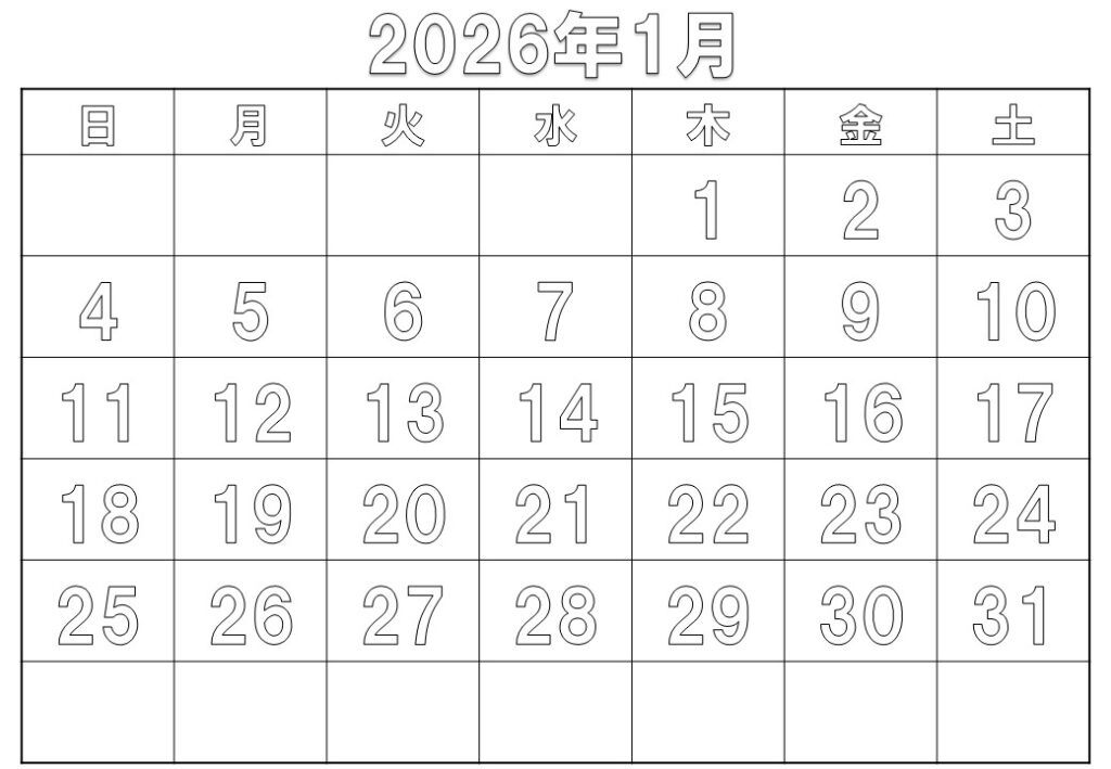 【無料ダウンロード】2026年のカレンダーの塗り絵