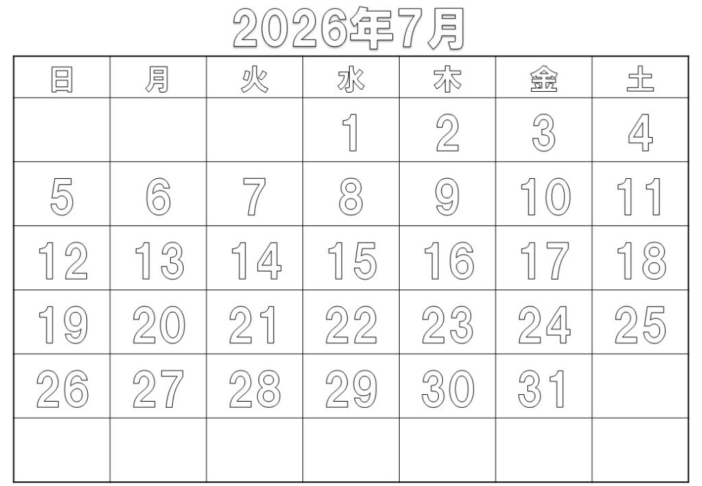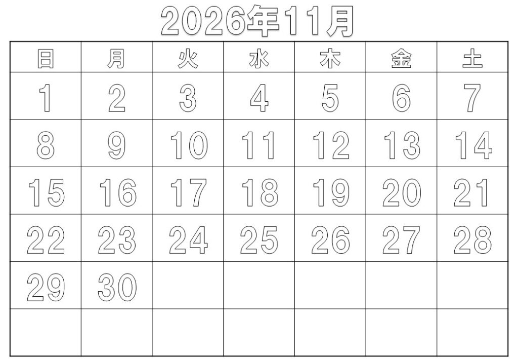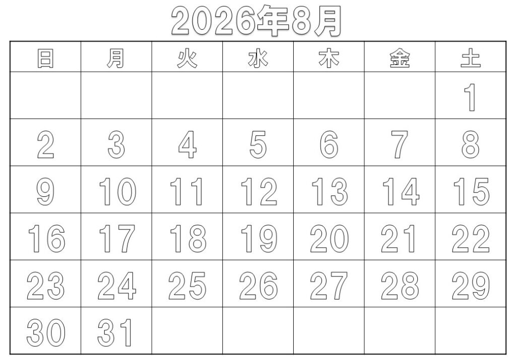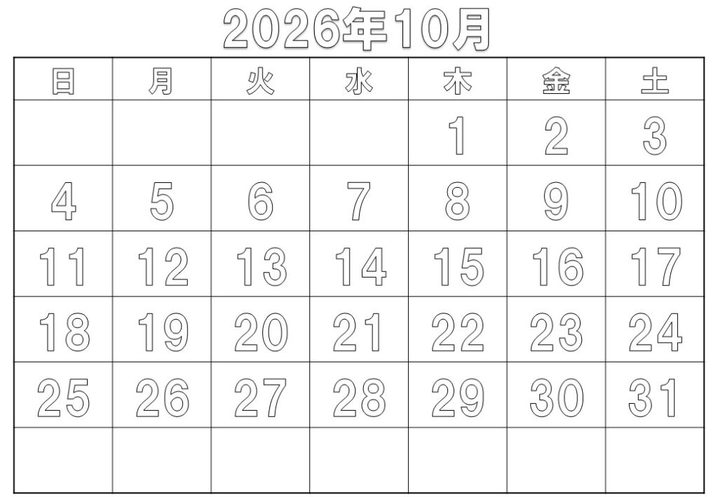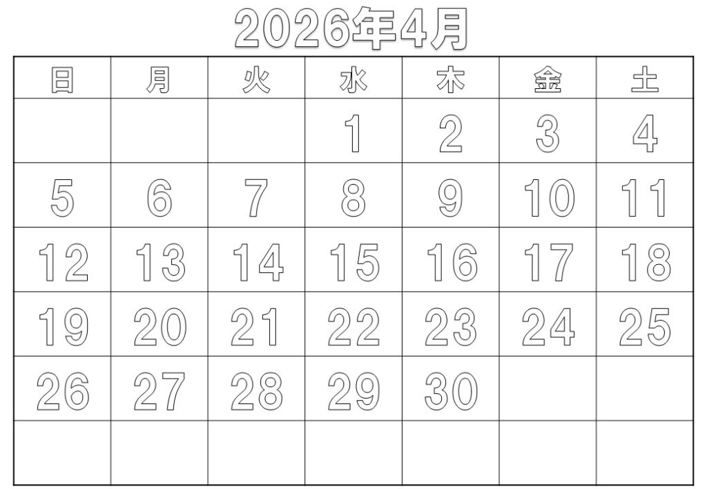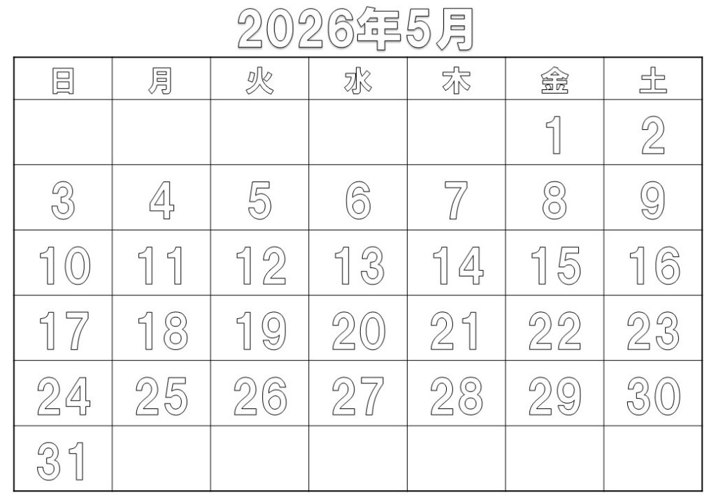 【無料ダウンロード】2026年のカレンダーの塗り絵