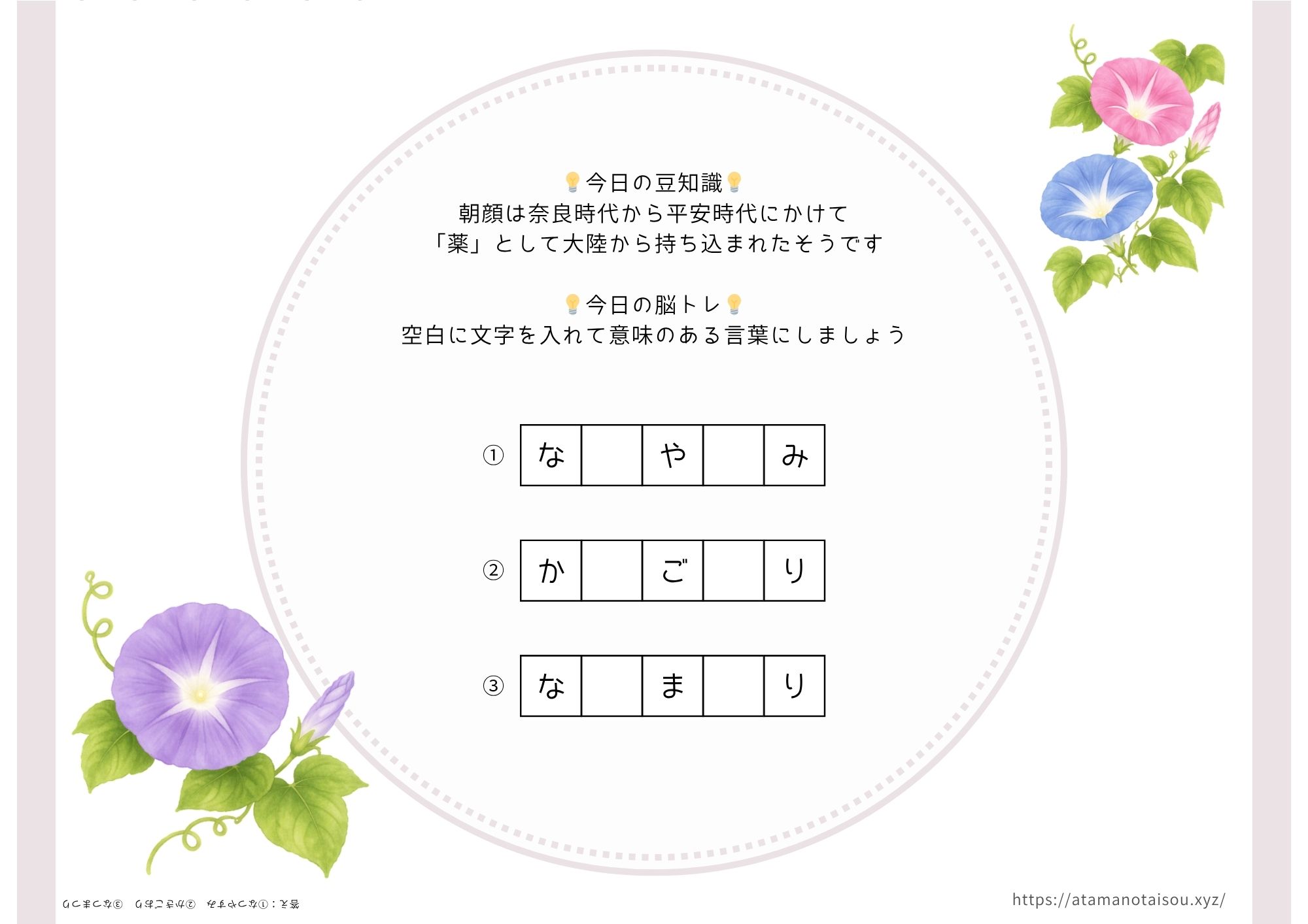 デイサービスや介護施設のレクリエーションに、無料でダウンロードしていだだける朝顔のペーパーランチョンマット4種類と箸袋の展開図2種類をご用意しました。