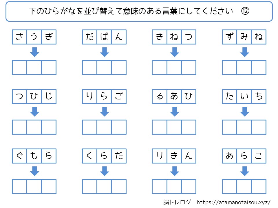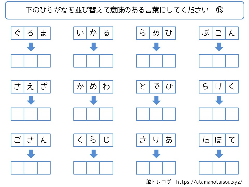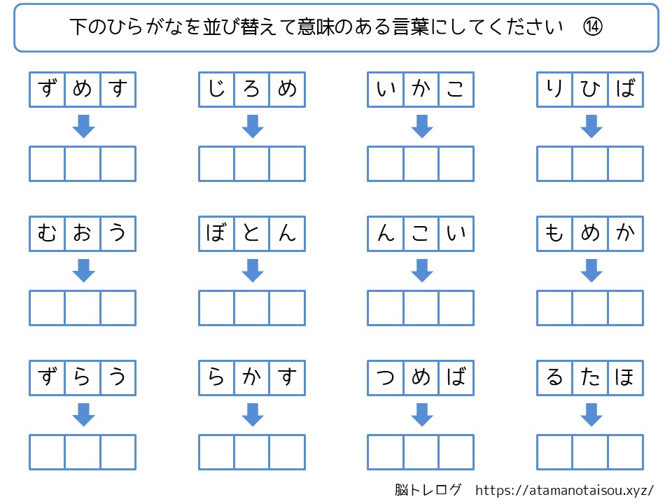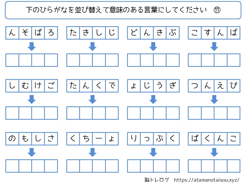 認知症予防などに使える高齢者向けの脳トレプリント「ひらがなの言葉探し」を無料でダウンロードしていただけるページです。