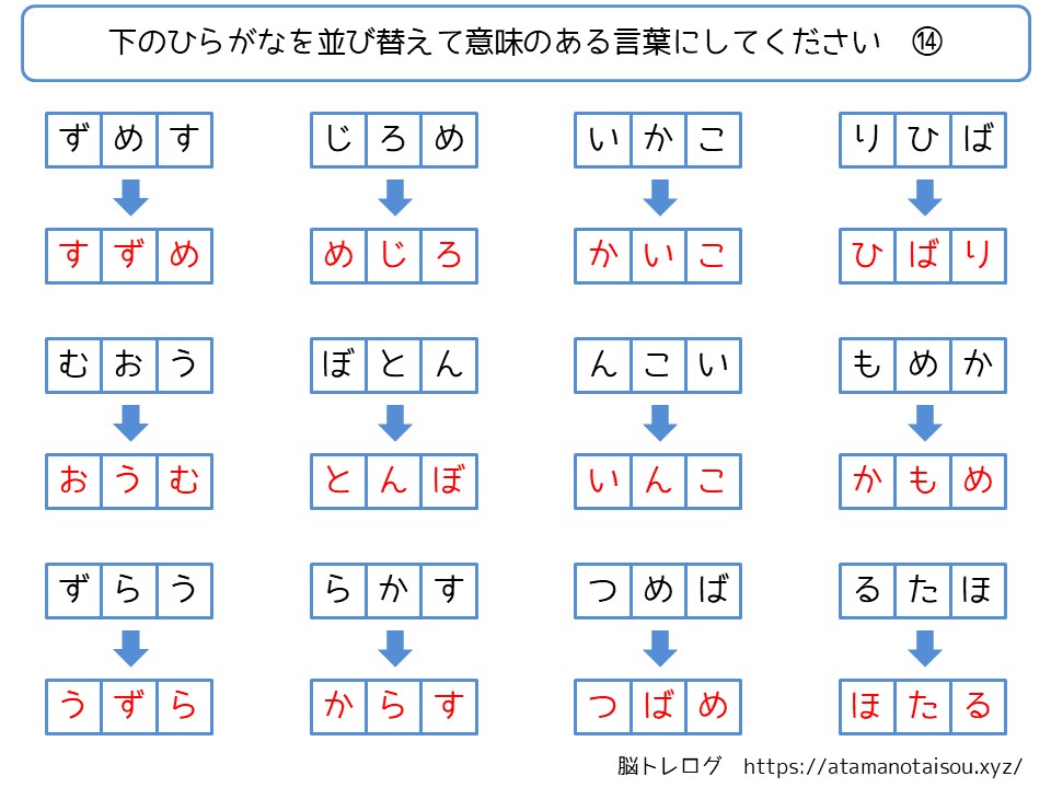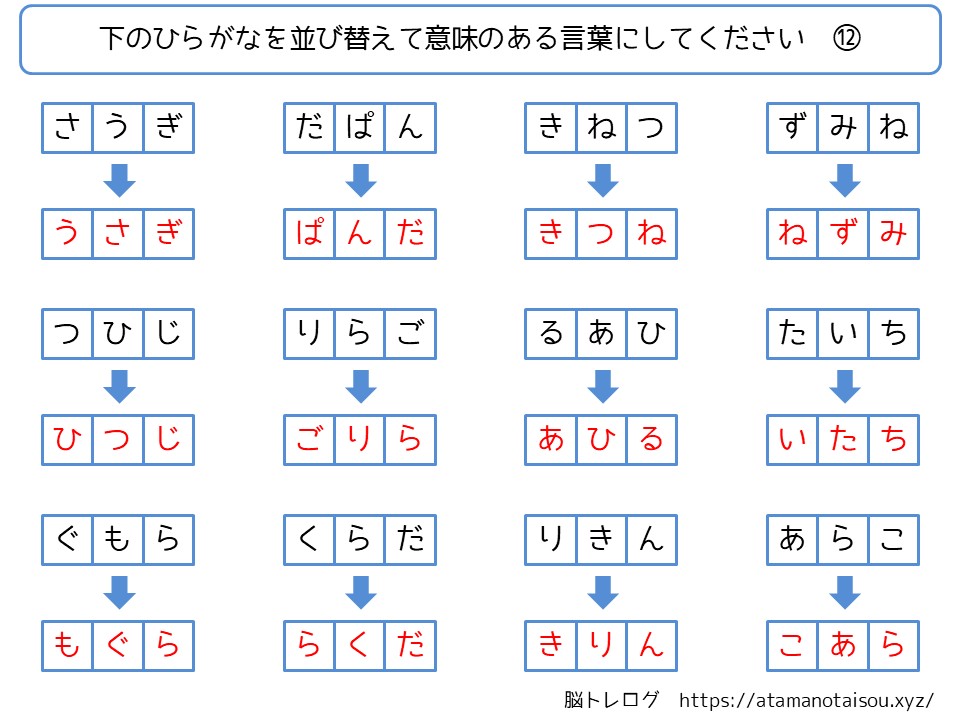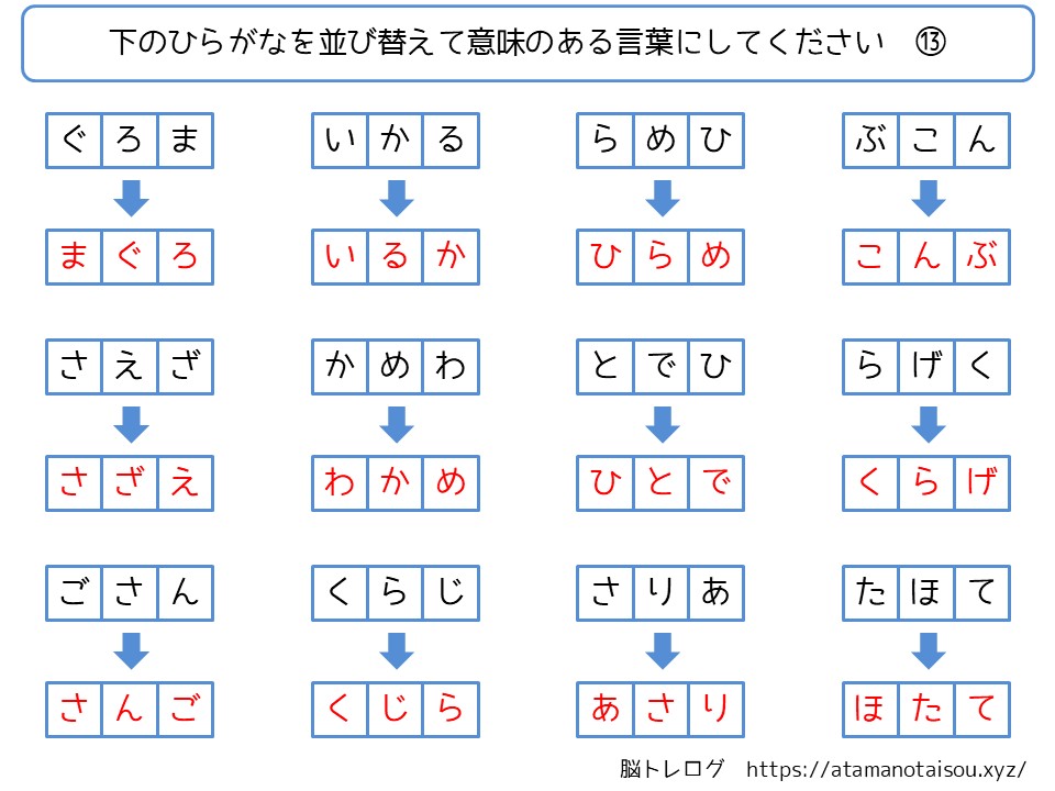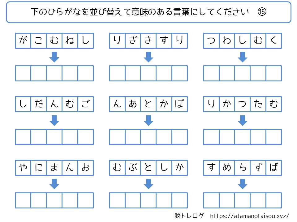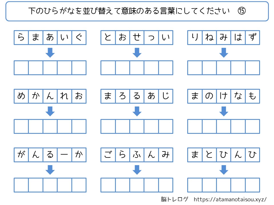 認知症予防などに使える高齢者向けの脳トレプリント「ひらがなの言葉探し」を無料でダウンロードしていただけるページです。