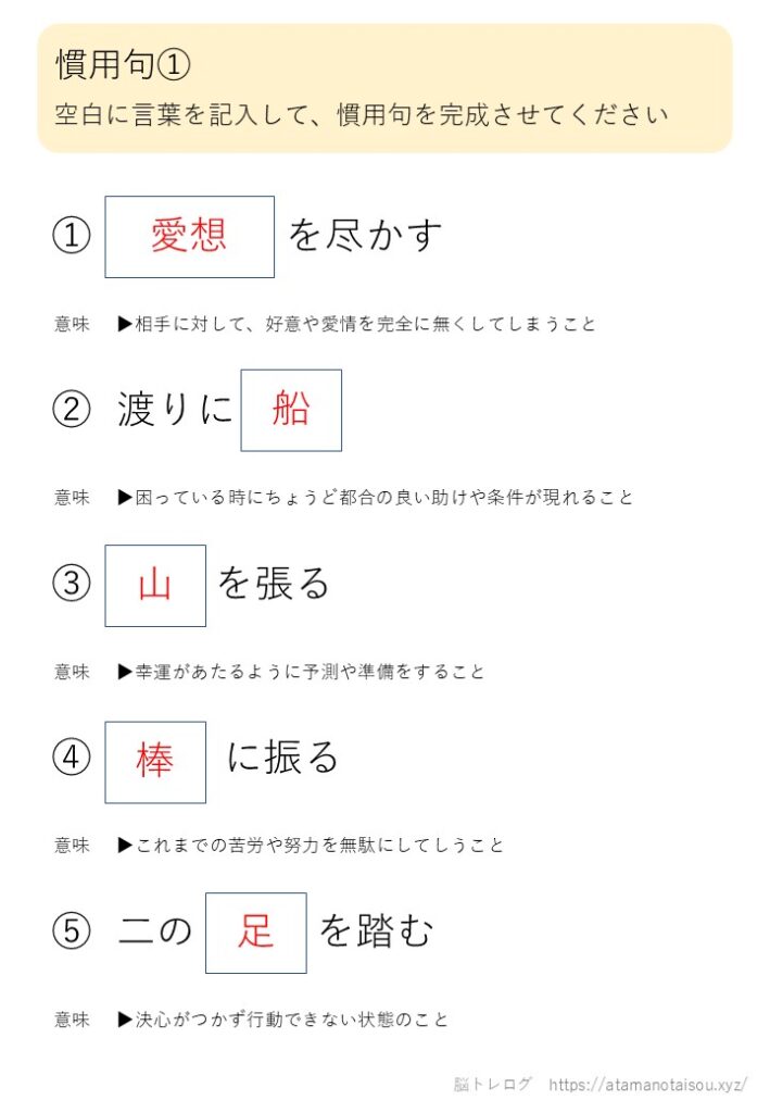 けっこう前から作りたいなと思っていた【慣用句】の脳トレプリントをやっと作成しました☺