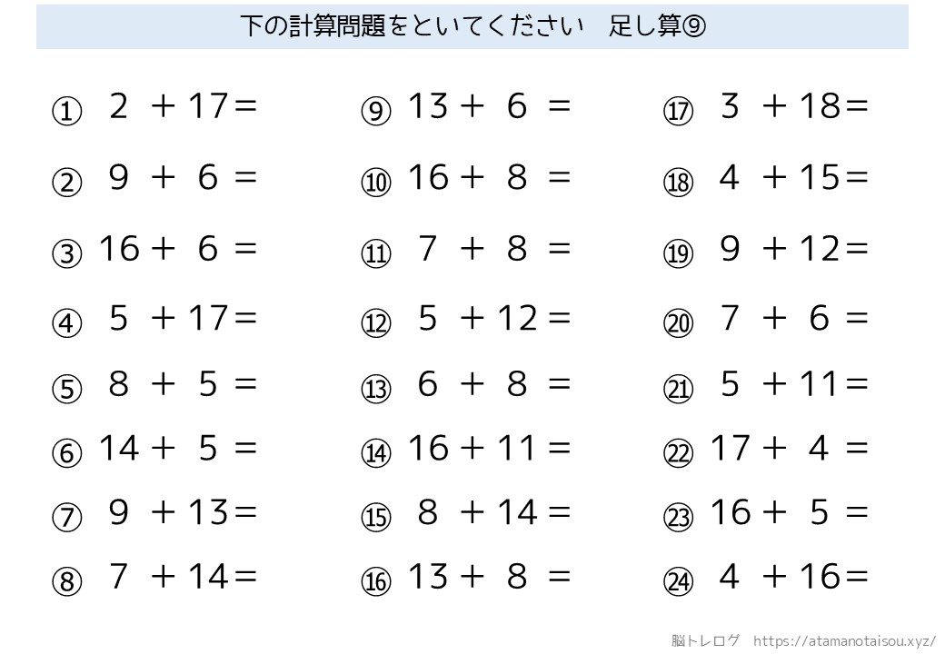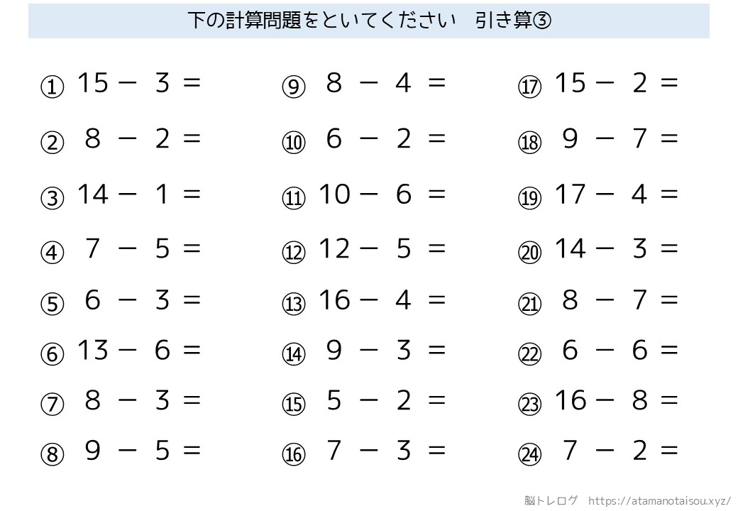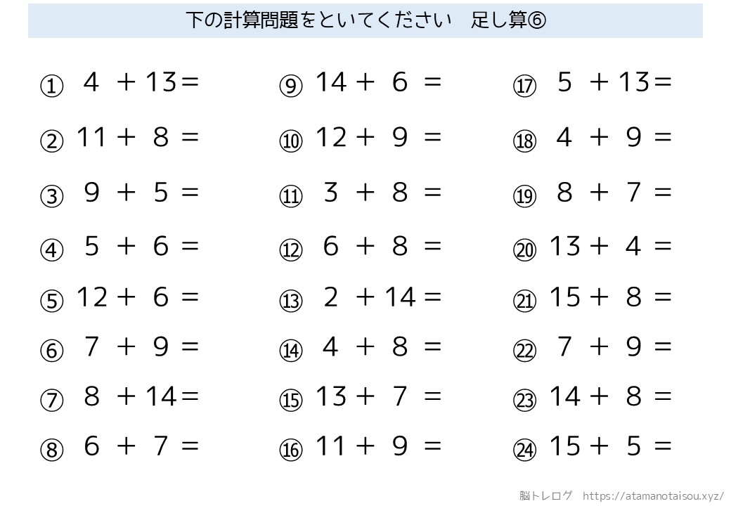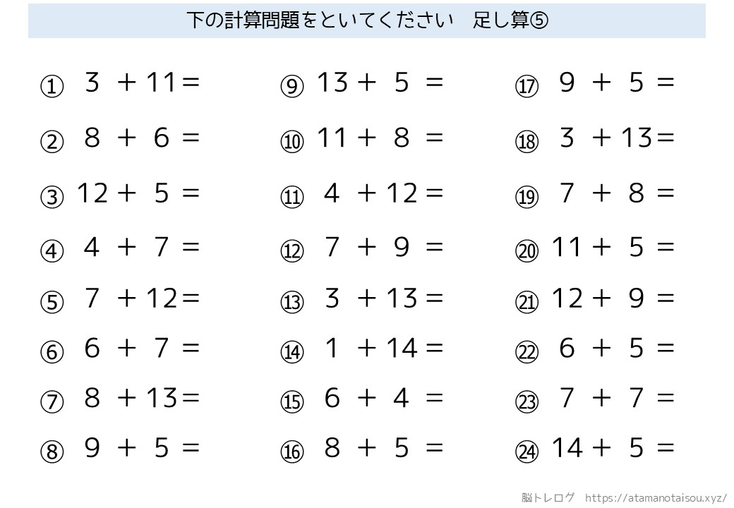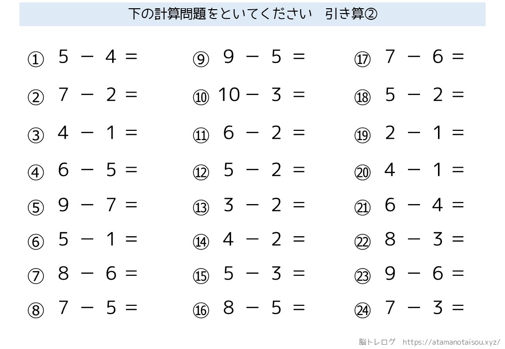 認知症予防などに使える高齢者向けの脳トレプリント「シンプルな計算」を無料でダウンロードしていただけるページです。