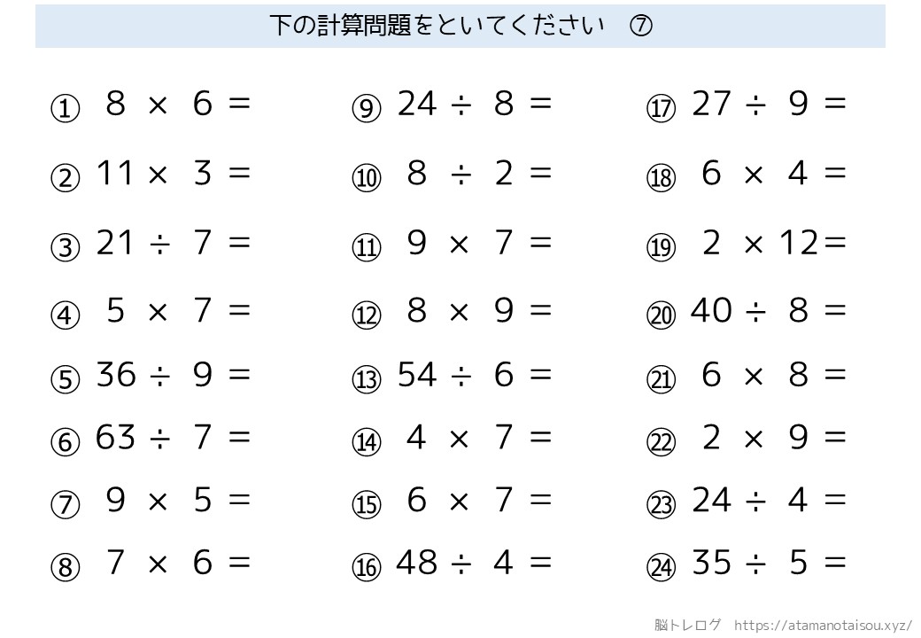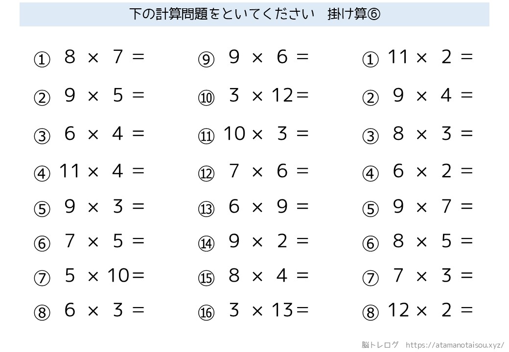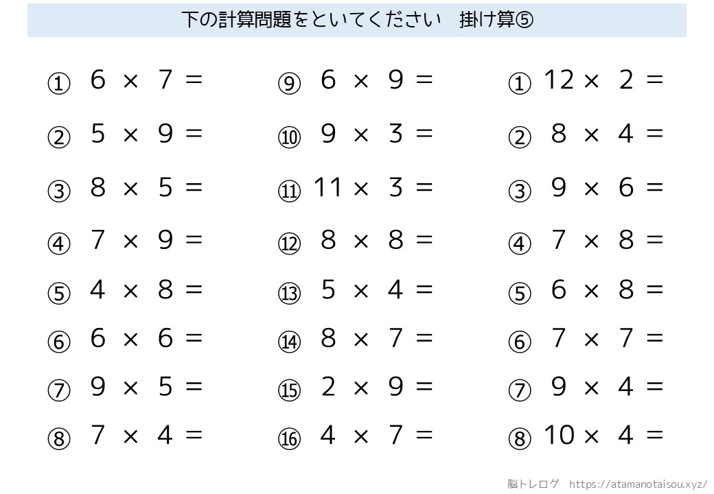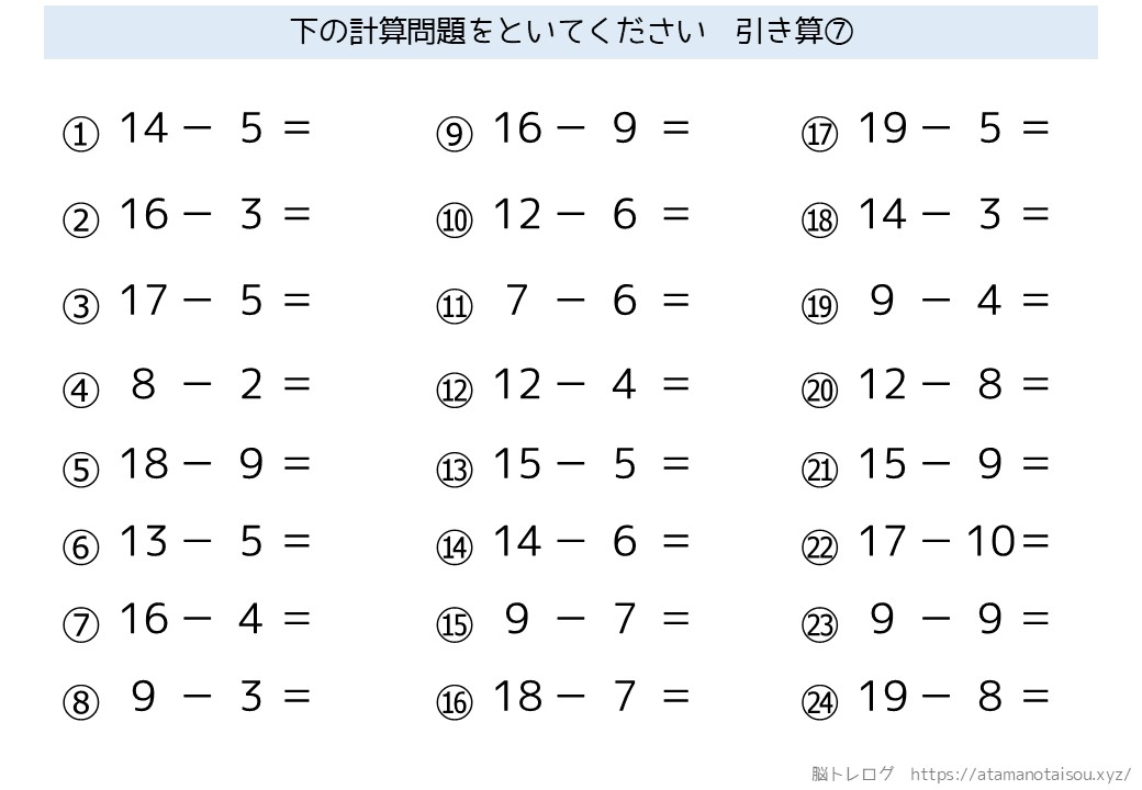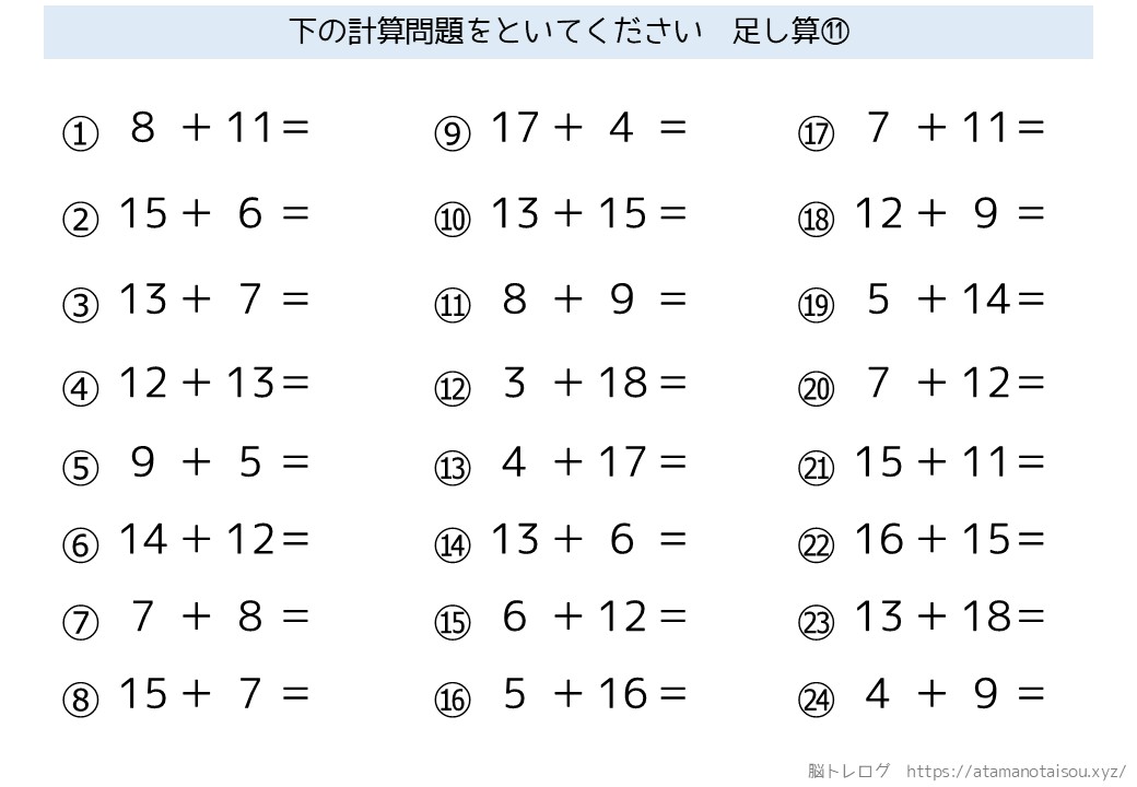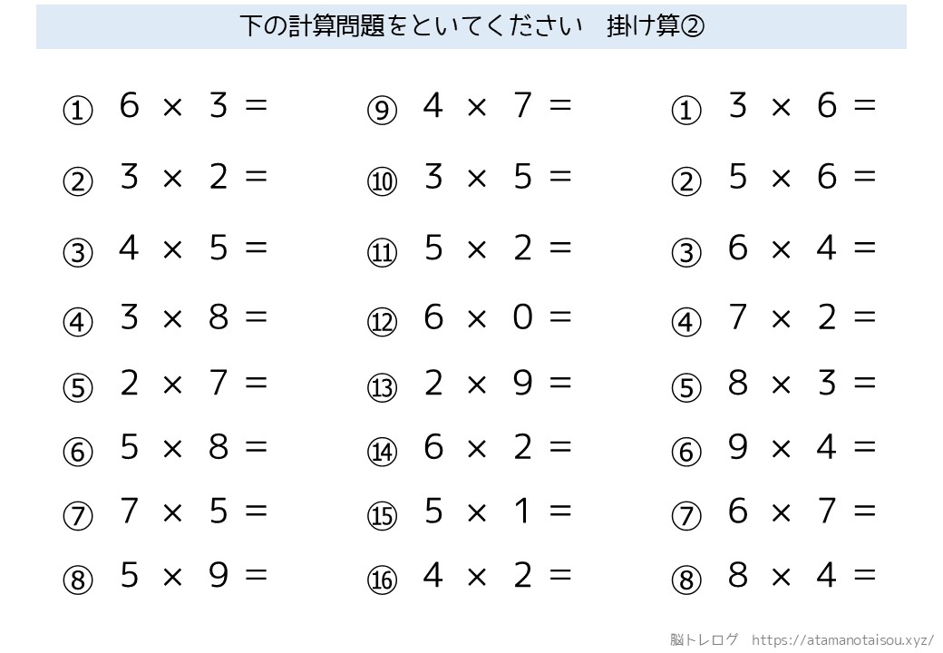 認知症予防などに使える高齢者向けの脳トレプリント「シンプルな計算」を無料でダウンロードしていただけるページです。
