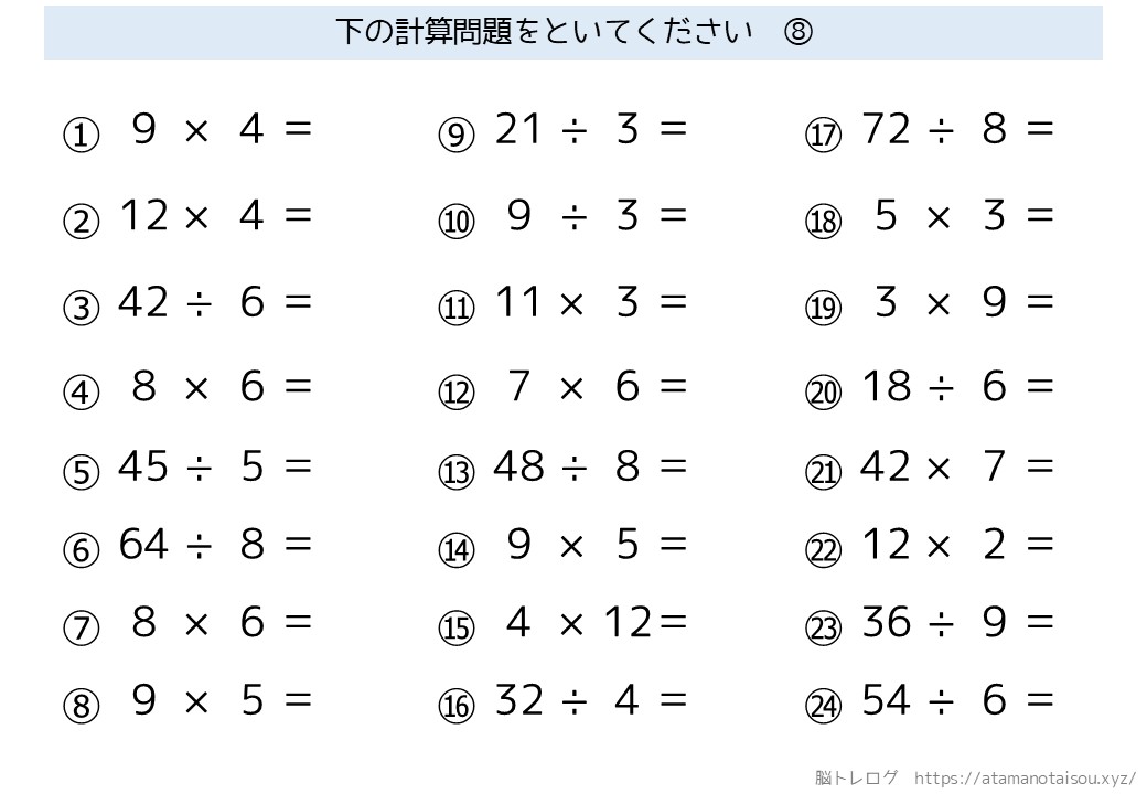 2/8 シンプルな計算のシリーズは回答なしで統一させていただきました