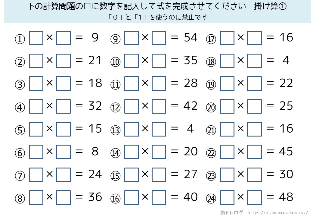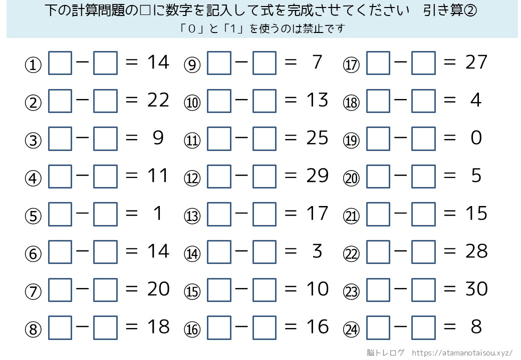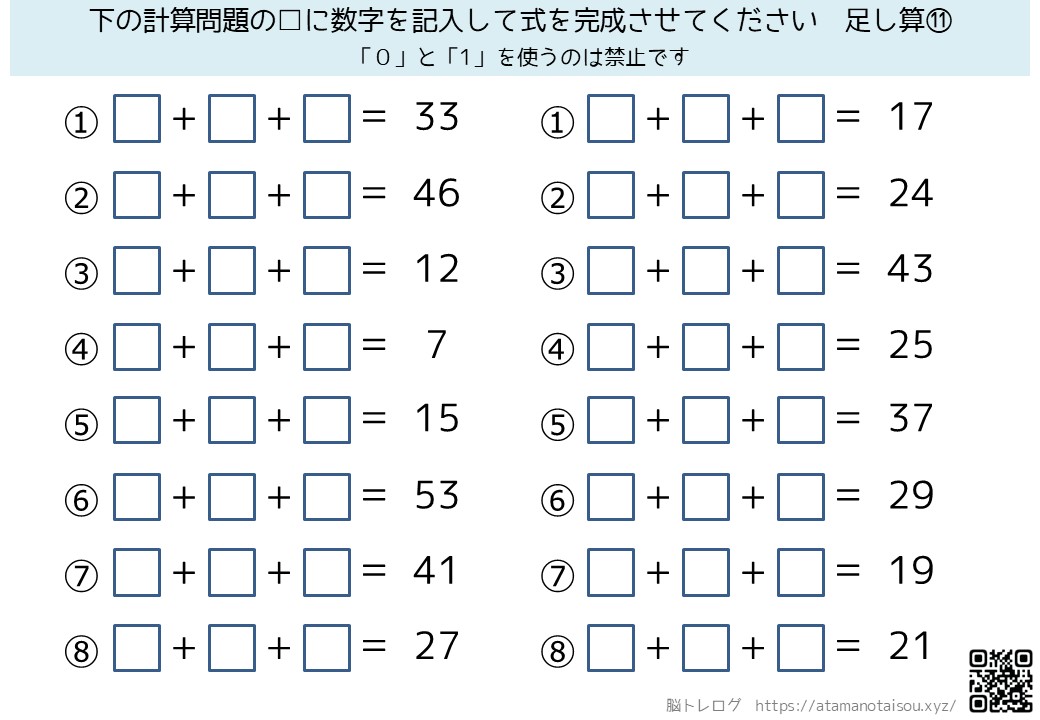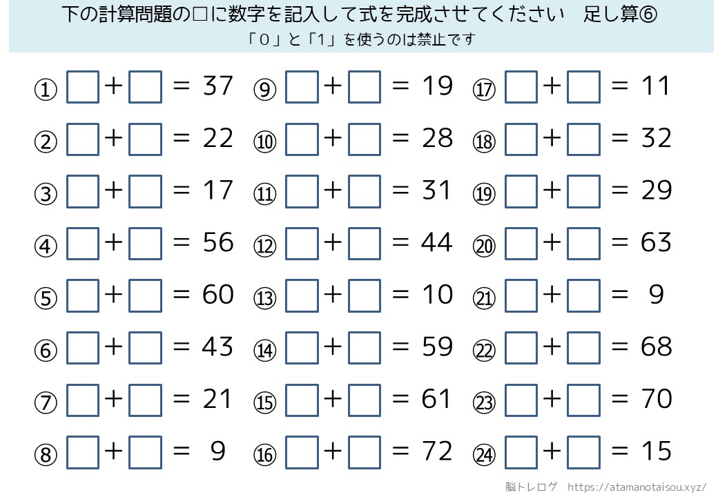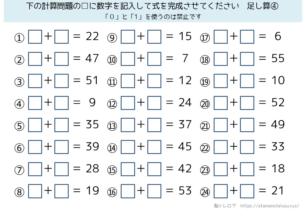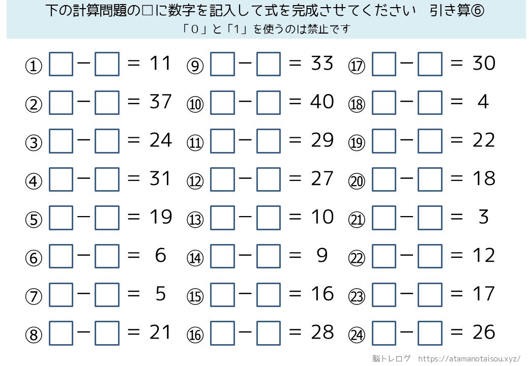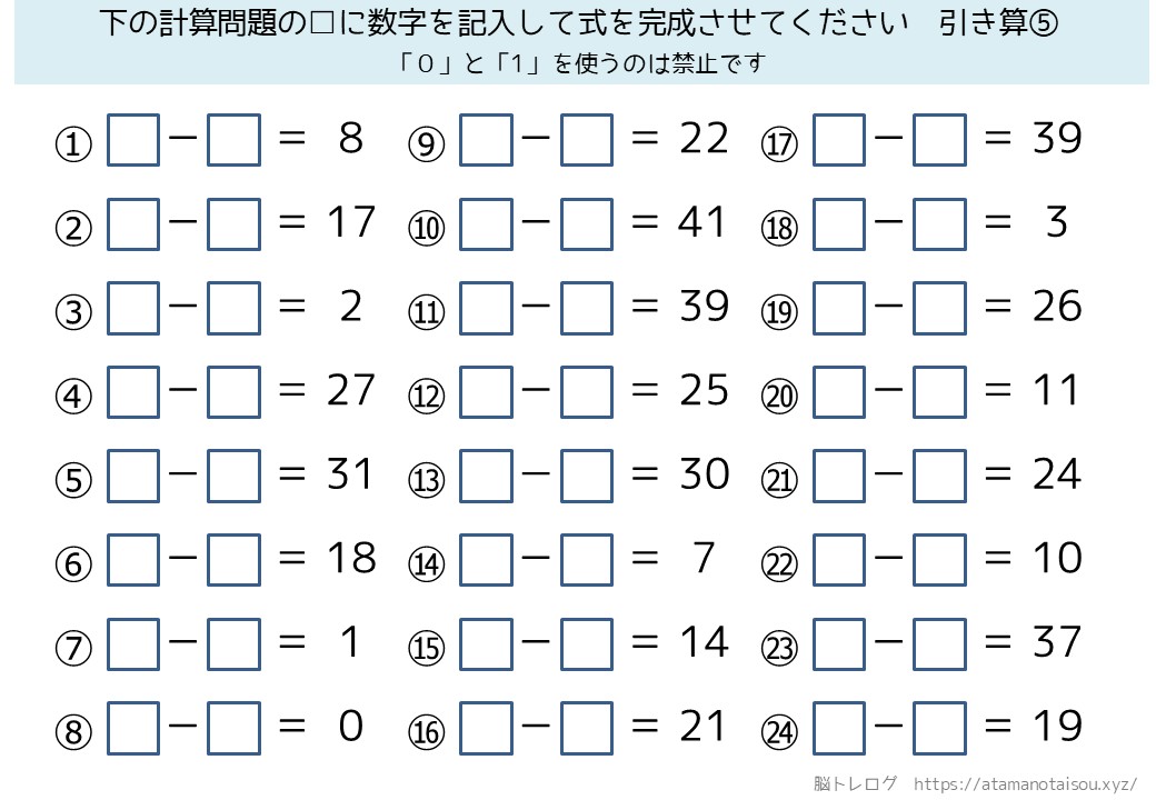 認知症予防などに使える高齢者向けの脳トレプリント「計算式作成」を無料でダウンロードしていただけるページです。