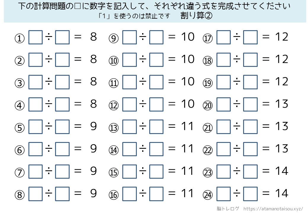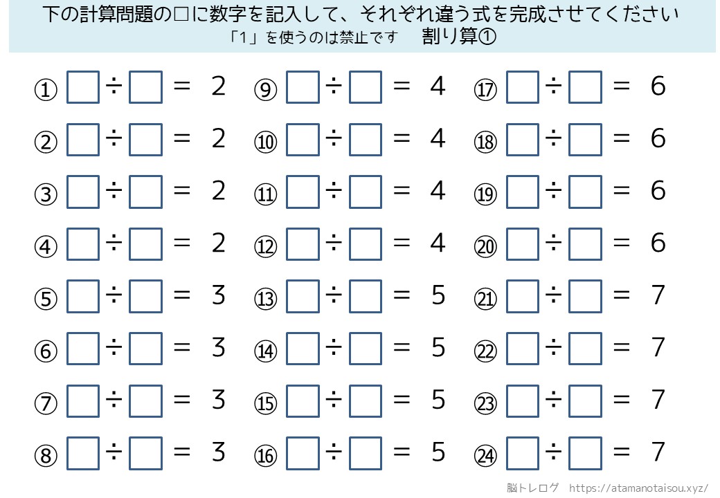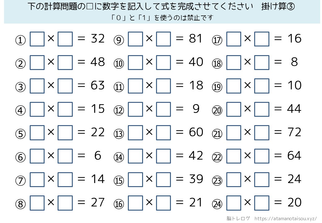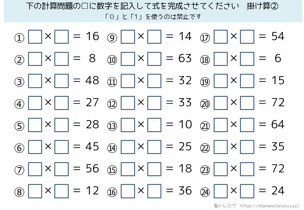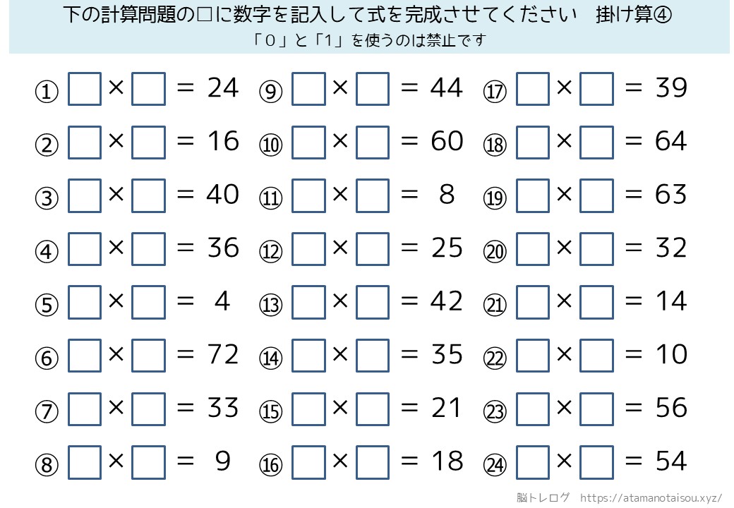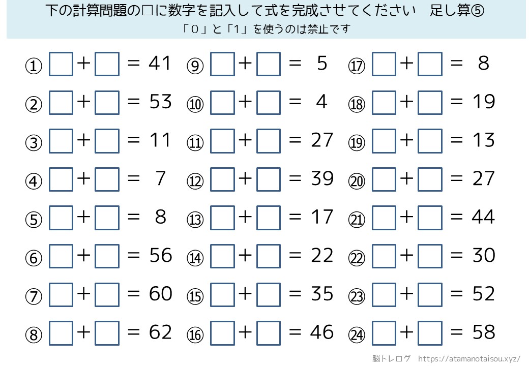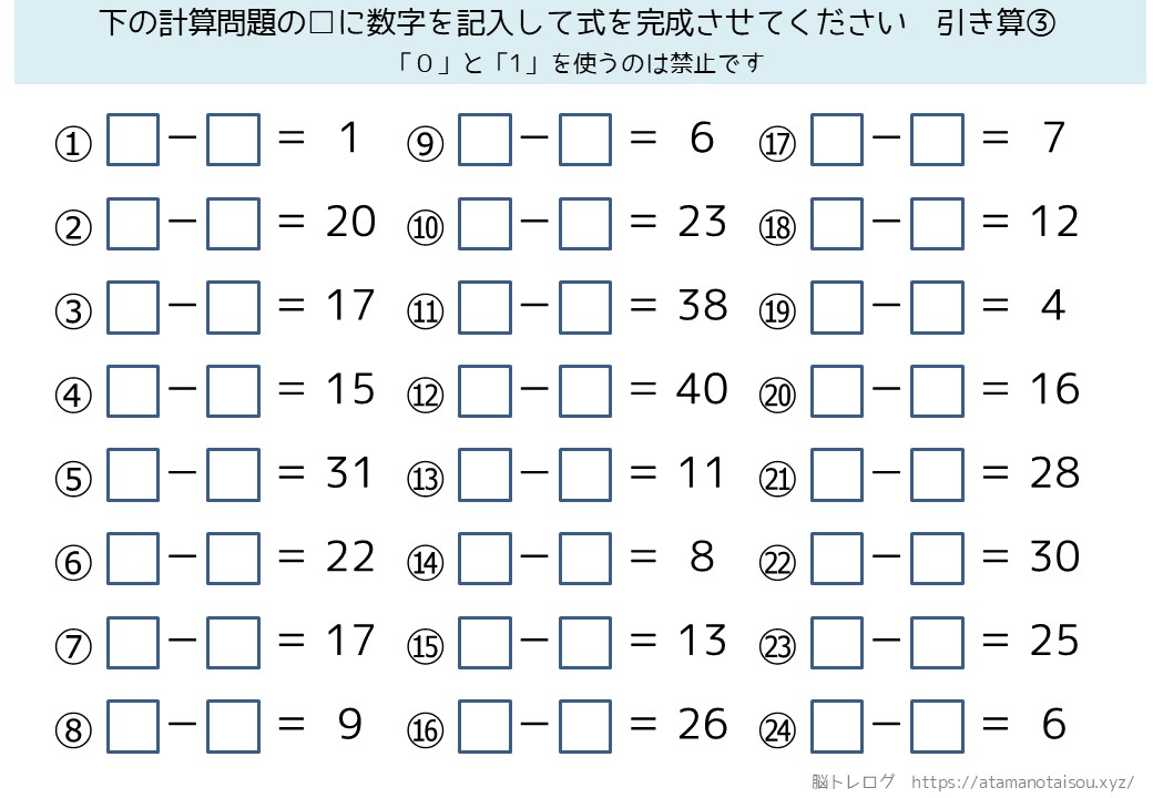 認知症予防などに使える高齢者向けの脳トレプリント「計算式作成」を無料でダウンロードしていただけるページです。