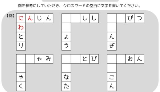 ホームひらがな・カタカナ言葉の穴埋め 【脳トレプリント】言葉の穴埋め③ 2025年4月19日 SHARE ポスト シェア はてブ LINE ポスト シェア はてブ LINE こんにちは! 今日は言葉の穴埋めシリーズを更新します☺ 画像下のダウンロードボタンよりダウンロードしてください! 言葉の穴埋め③ダウンロード 言葉の穴埋め③回答ダウンロード 4文字の言葉は空白を2つにしたので、なかなか面白いと思います。 ぜひ、ご活用ください~! こちらもどうぞ☺ ➡️言葉の穴埋め脳トレプリント一覧 ➡️ひらがな・カタカナのプリント一覧 コメントを残す コメントをキャンセルメールアドレスが公開されることはありません。 ※ が付いている欄は必須項目ですコメント ※ 名前 ※ メール ※ サイト 次回のコメントで使用するためブラウザーに自分の名前、メールアドレス、サイトを保存する。 上に表示された文字を入力してください。 Δ