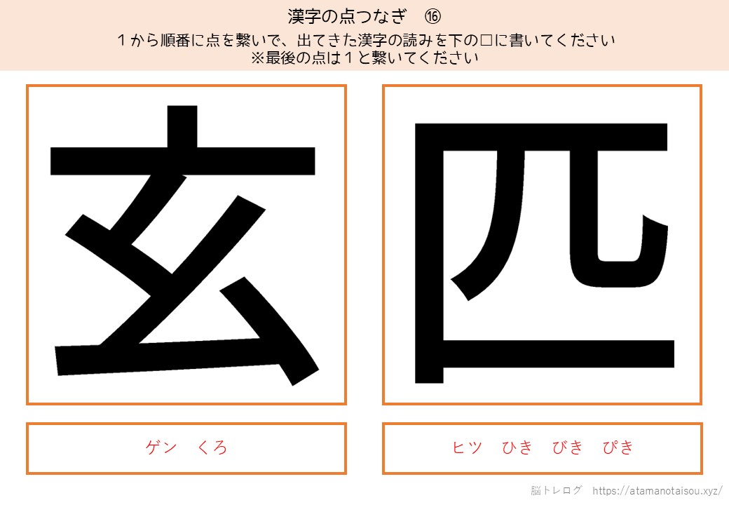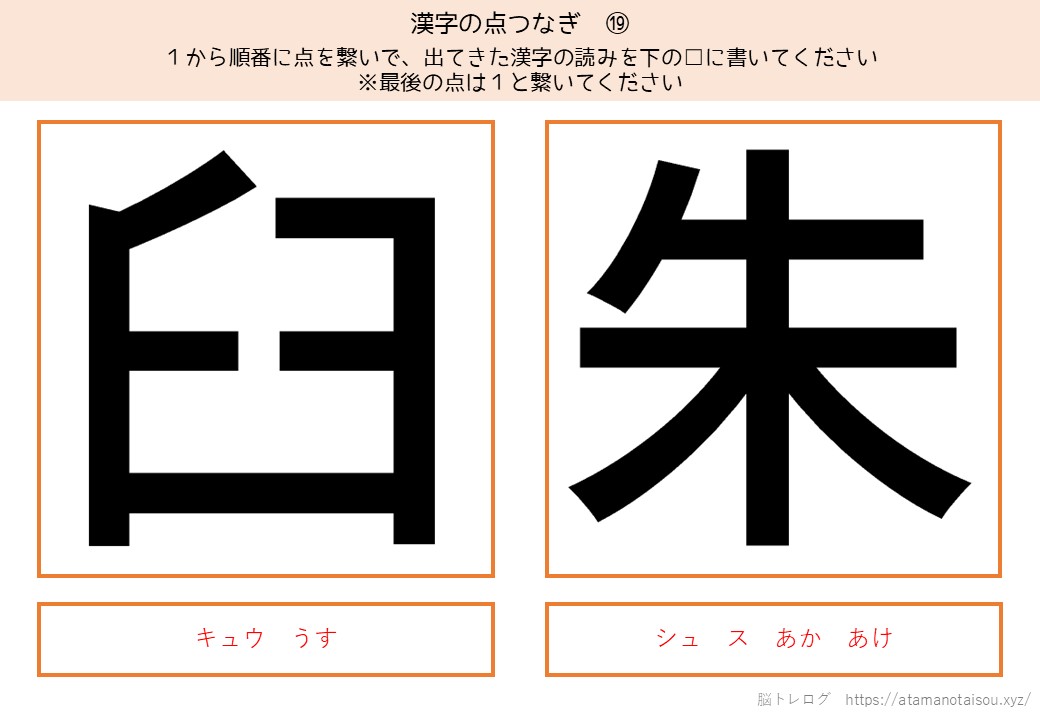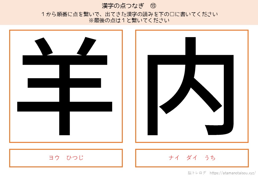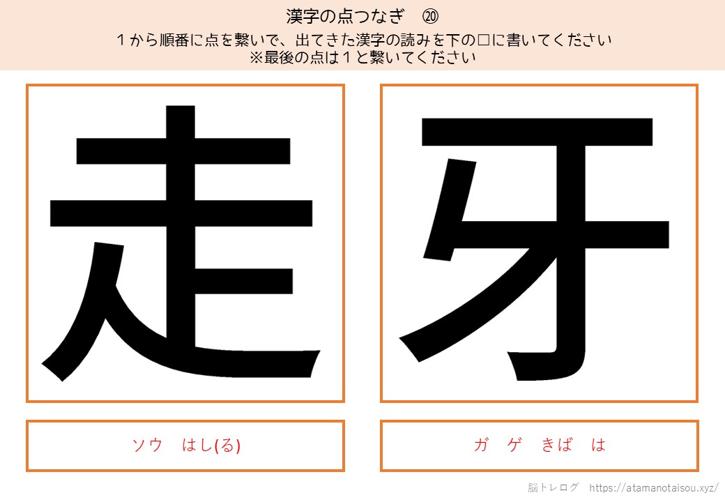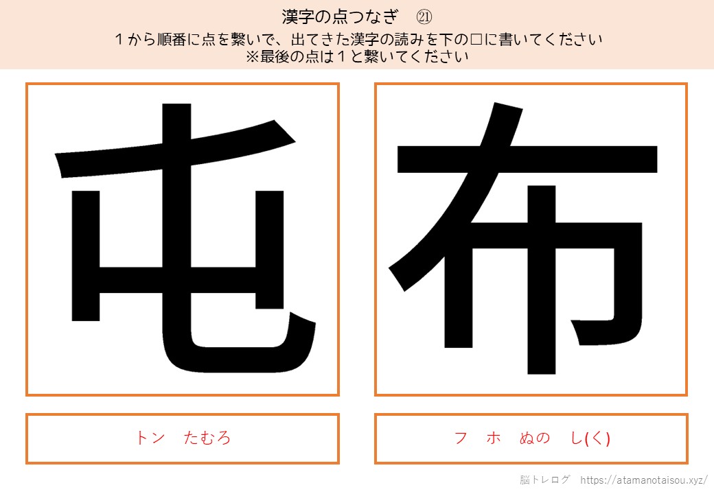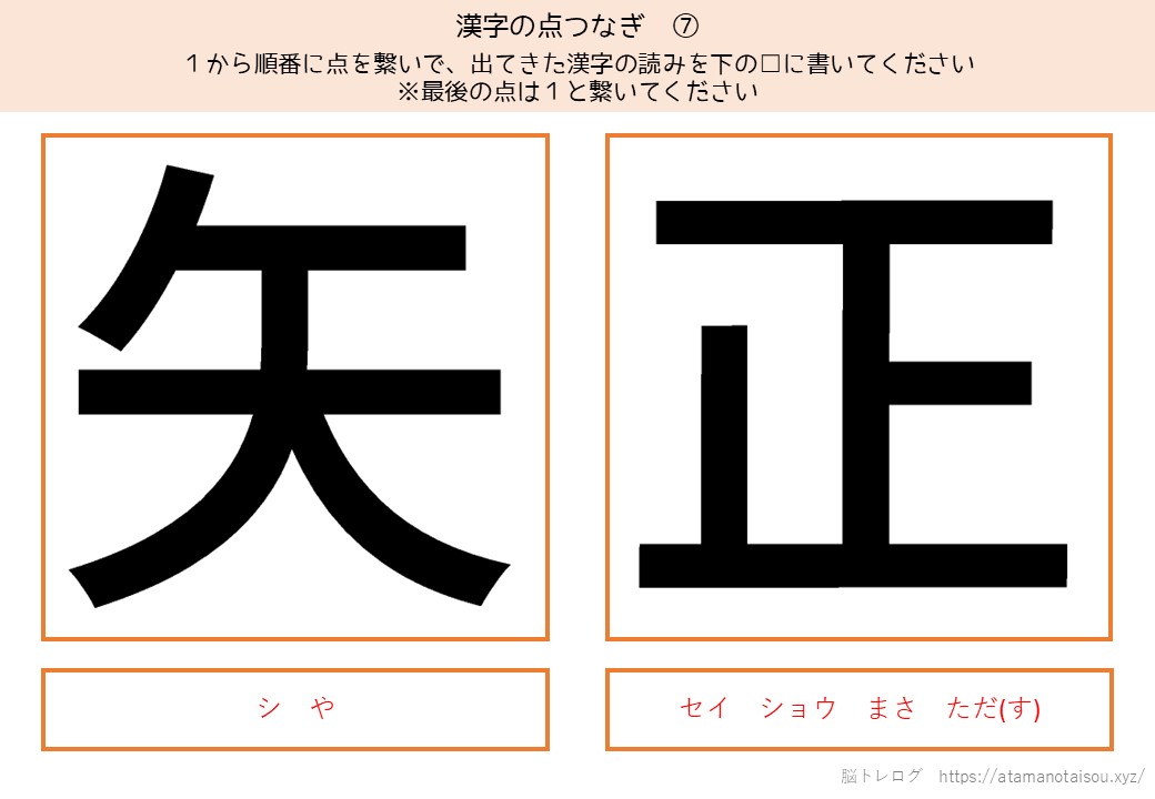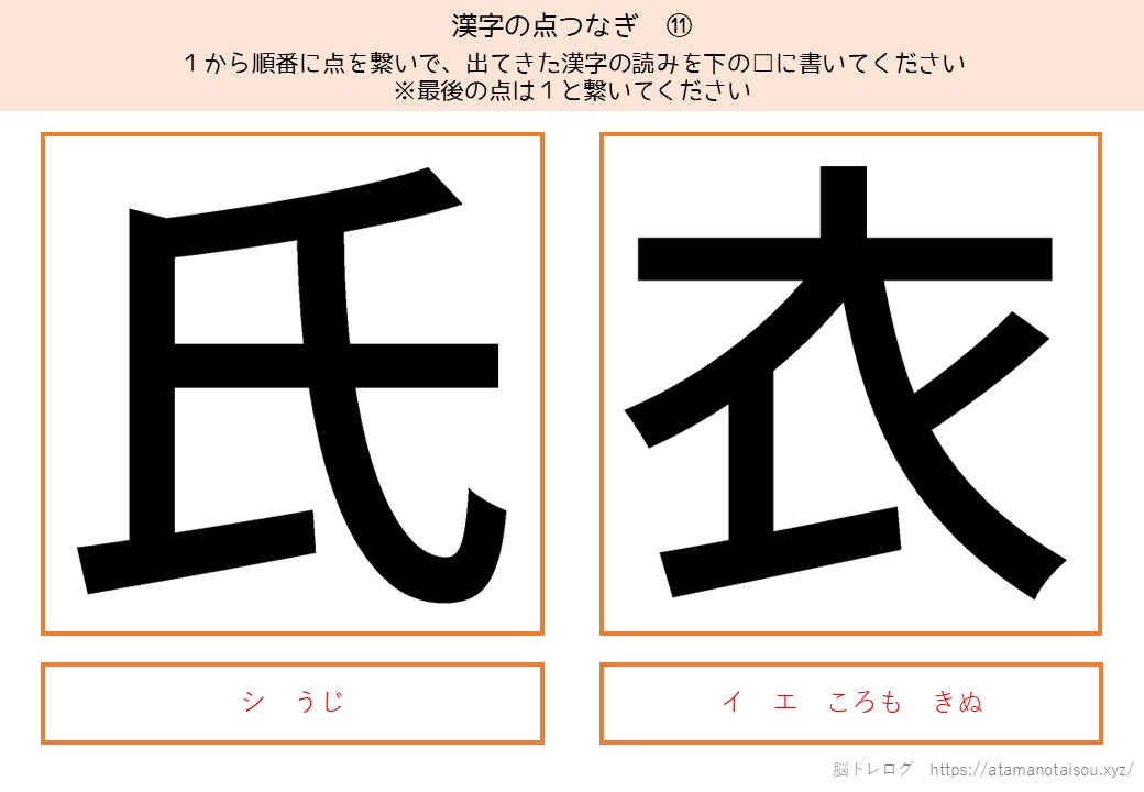 認知症予防やレクリエーションなどに使える高齢者向けの脳トレプリント「漢字の点つなぎ」を無料でダウンロードしていただけるページです。