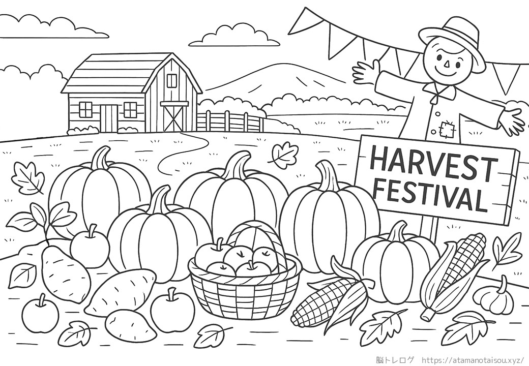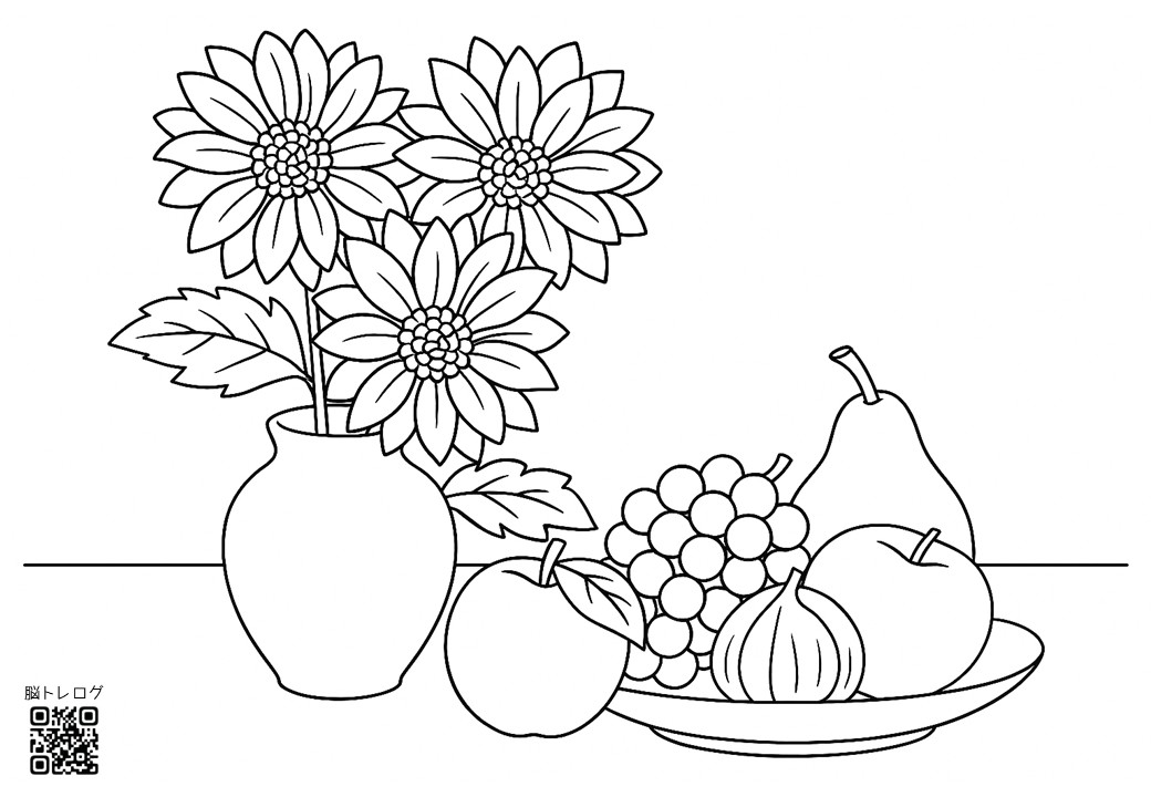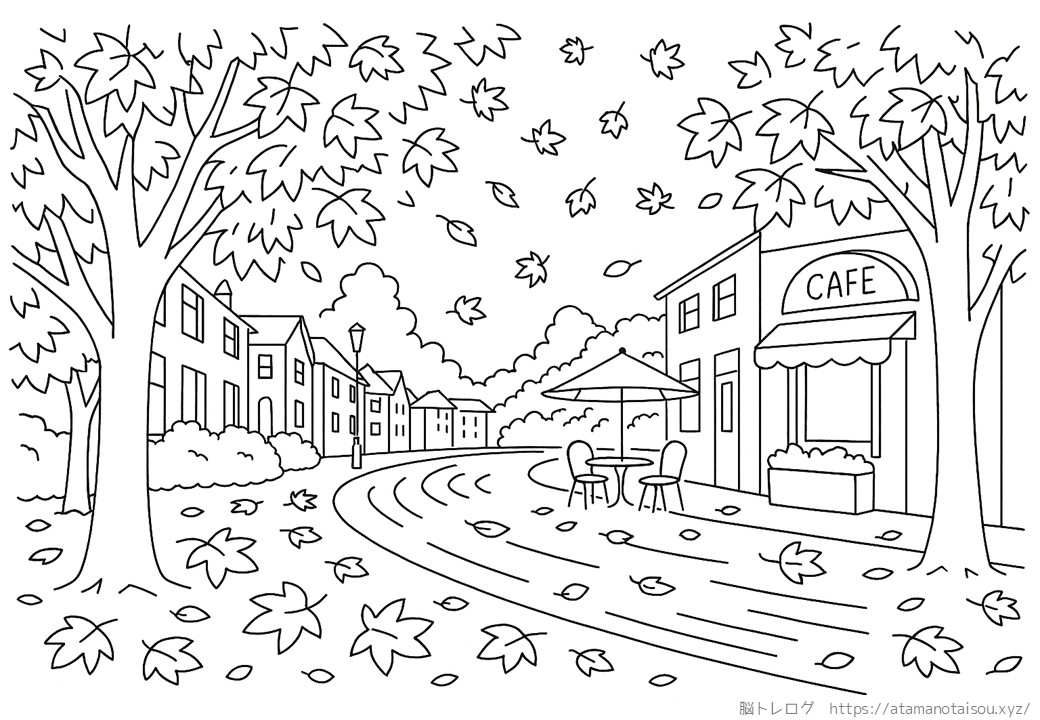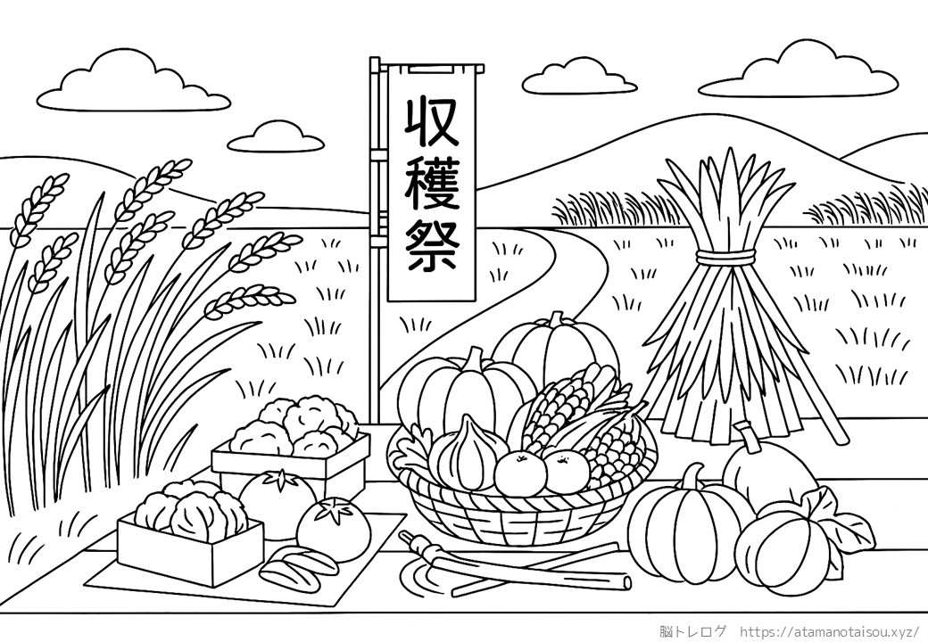 高齢者向けの秋の塗り絵を無料でダウンロードしていただけるページです。デイサービスなどの介護施設やご家庭での認知症予防、リハビリ、脳トレなどにご活用ください。
