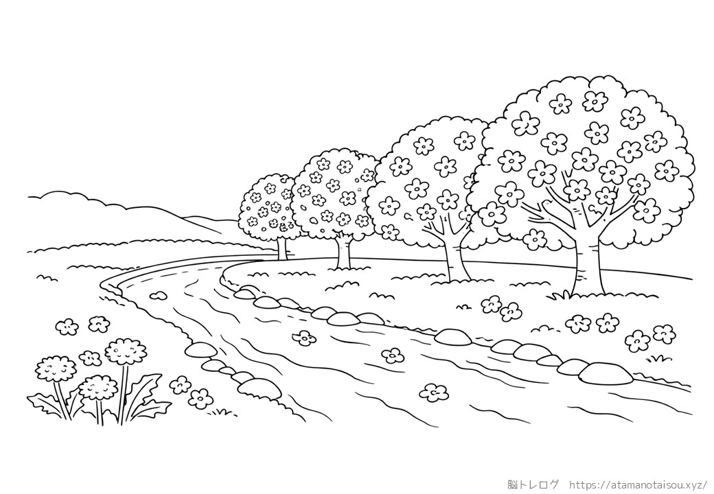 高齢者向けの春の塗り絵を無料でダウンロードしていただけるページです。デイサービスなどの介護施設やご家庭での認知症予防、リハビリ、脳トレなどにご活用ください。