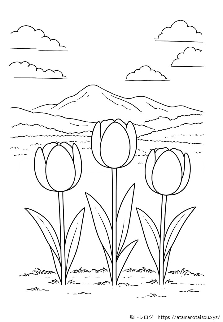 春の塗り絵:横