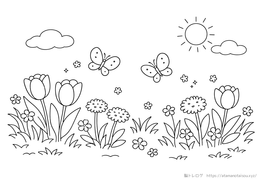 高齢者向けの春の塗り絵を無料でダウンロードしていただけるページです。デイサービスなどの介護施設やご家庭での認知症予防、リハビリ、レクリエーションなどにご活用ください。