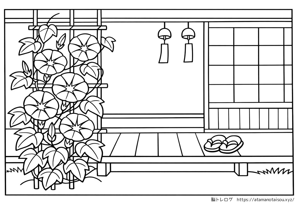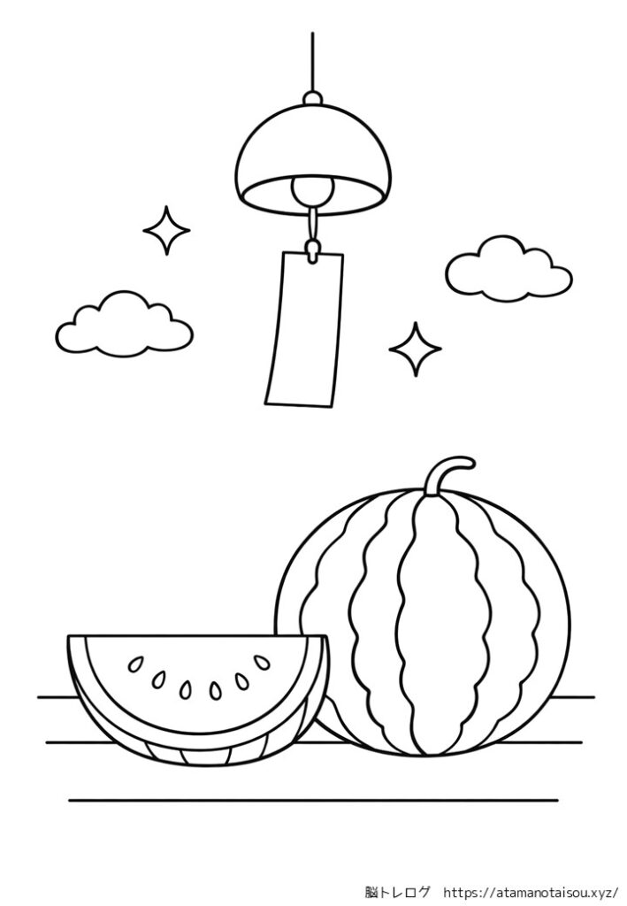 高齢者向けの夏の塗り絵を無料でダウンロードしていただけるページです。デイサービスなどの介護施設やご家庭での認知症予防、リハビリ、脳トレなどにご活用ください。