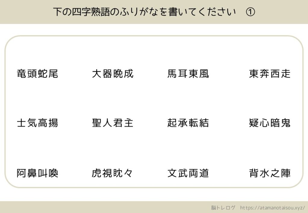 漢字・四字熟語の脳トレプリント一覧