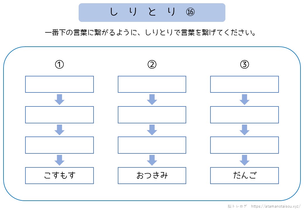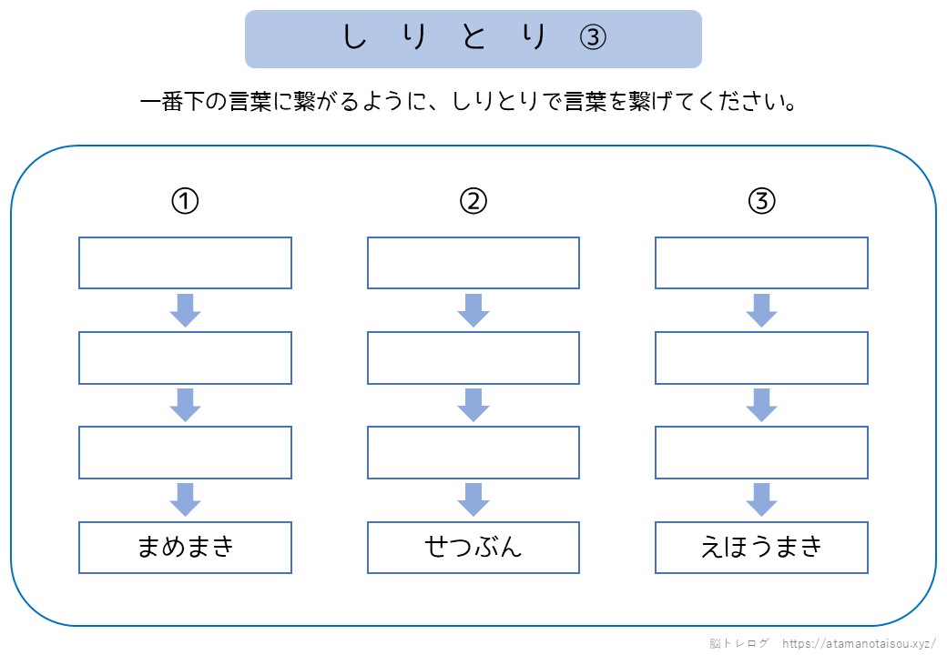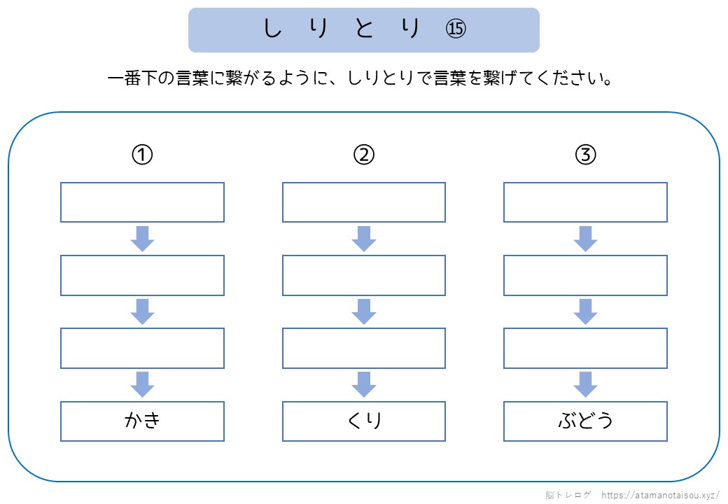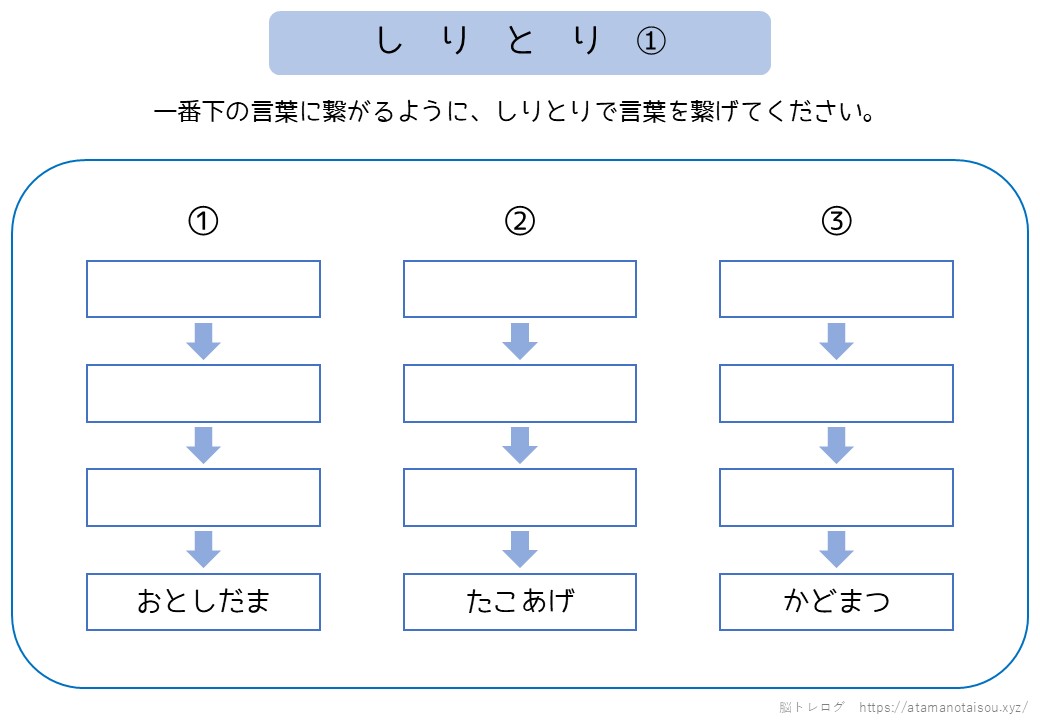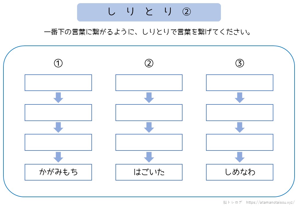 認知症予防などに使える高齢者向けの脳トレプリント「しりとりⅡ」を無料でダウンロードしていただけるページです。