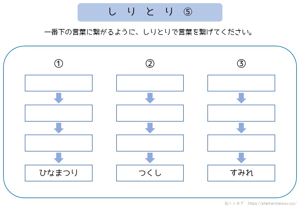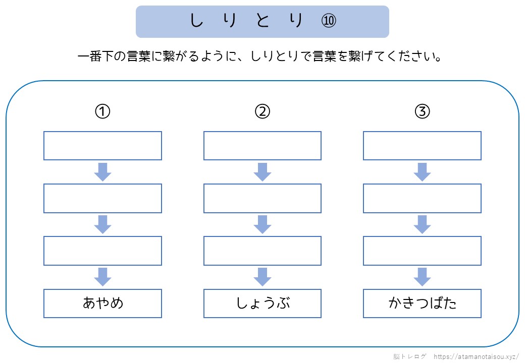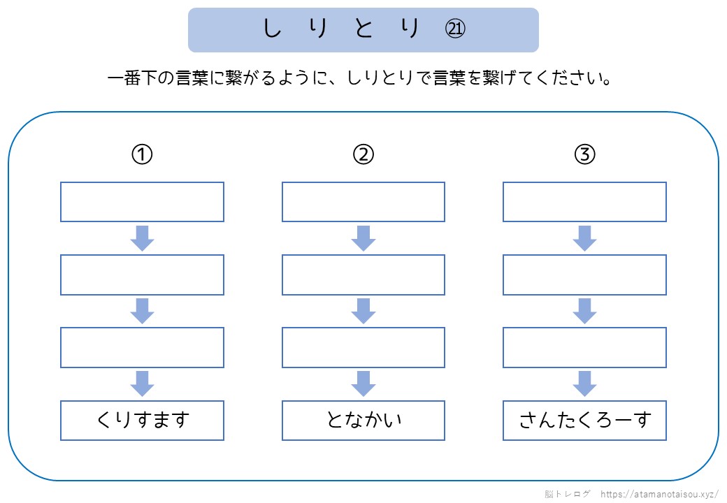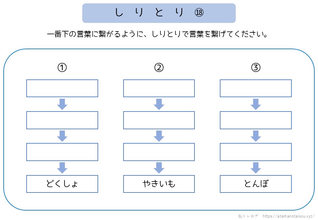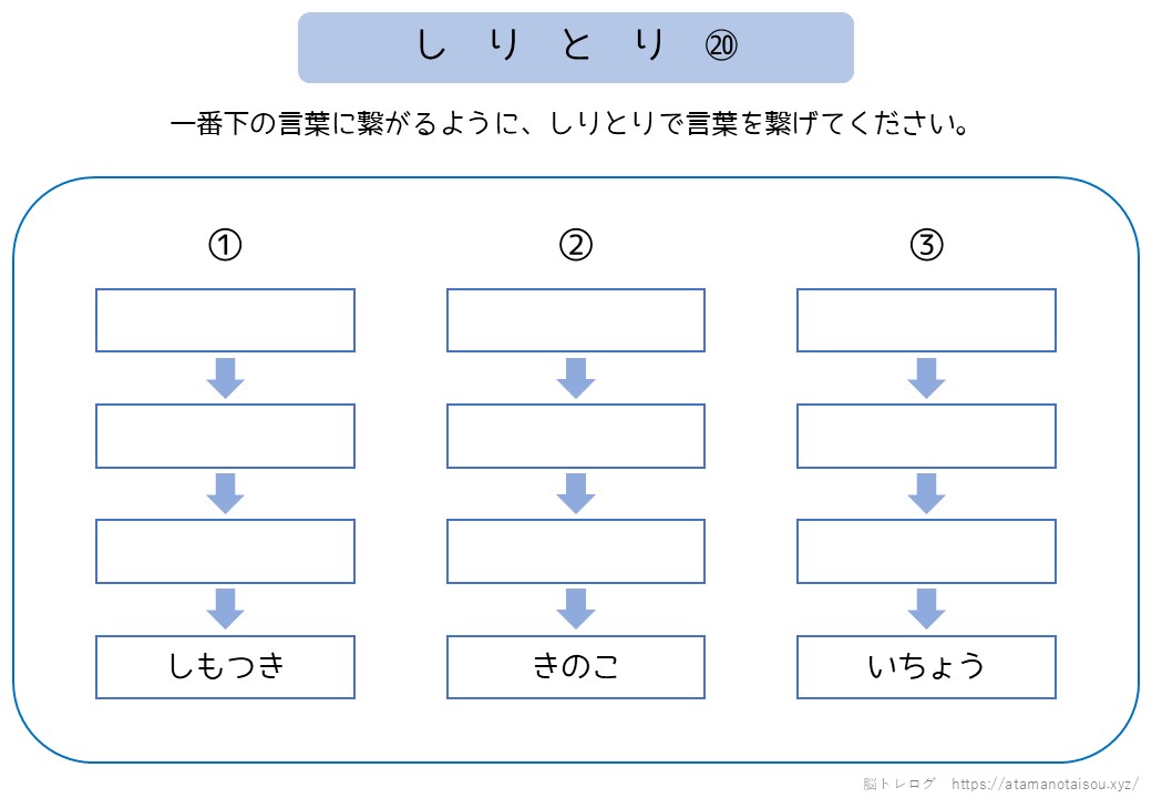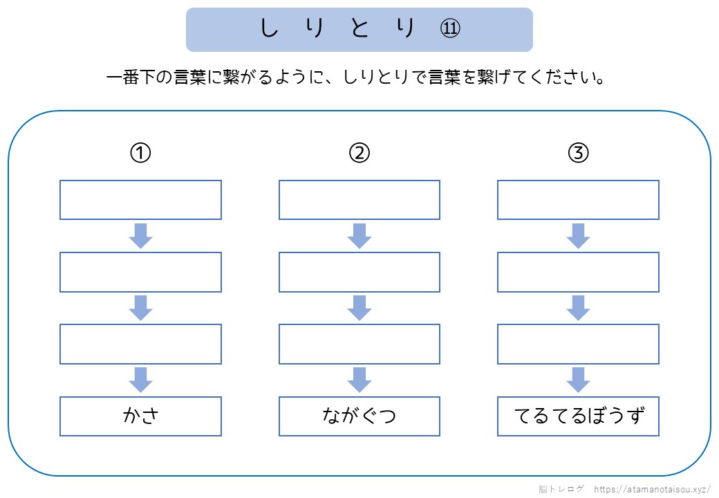 認知症予防などに使える高齢者向けの脳トレプリント「しりとりⅡ」を無料でダウンロードしていただけるページです。